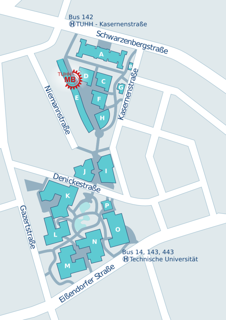 Our office is located in Building E, the long building in the upper part of the campus. Just enter through the northernmost entrance, turn right, and then go to the second door on the right. A campus map is available on the TUHH website.